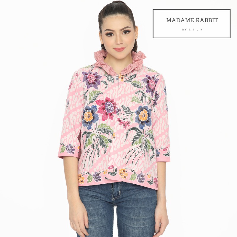 MADAME RABBIT - Baju Kerja Wanita Blazer Batik Tulis Handmade Blossom Pink