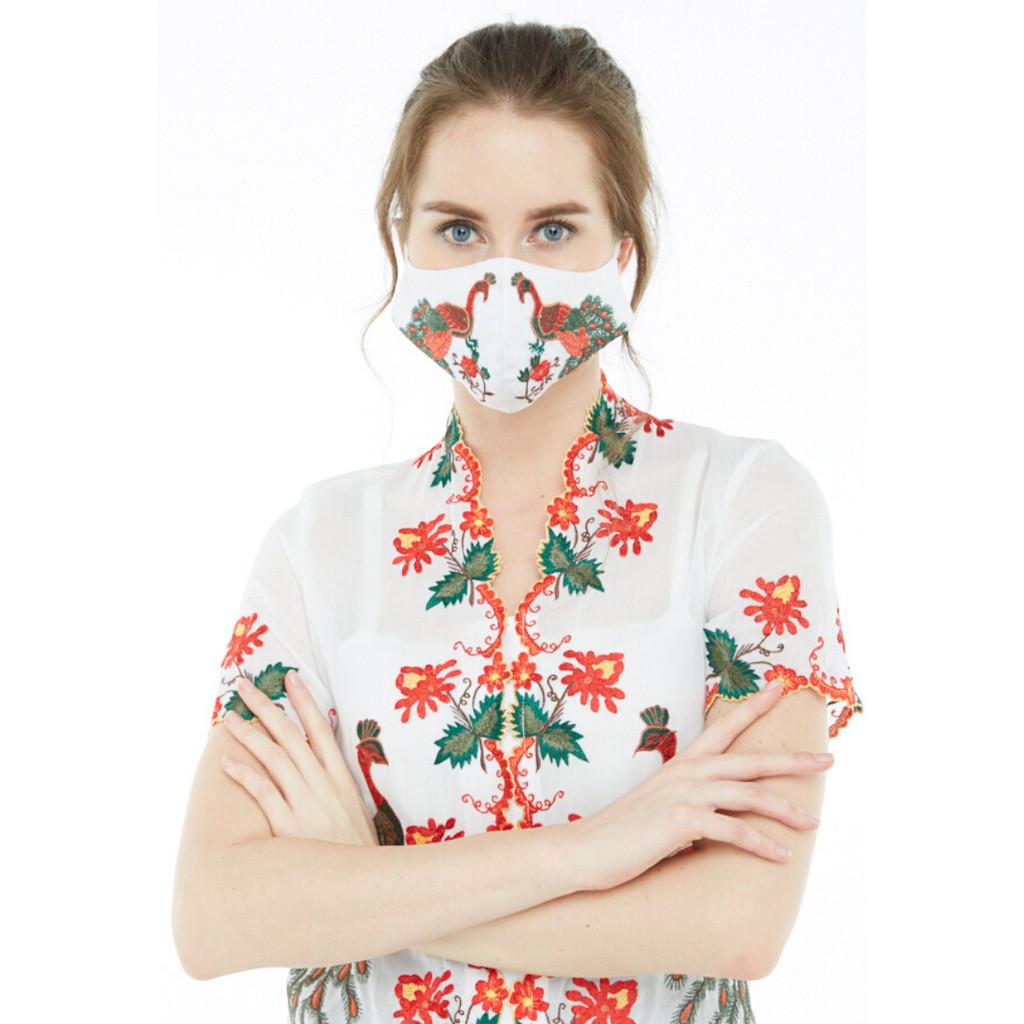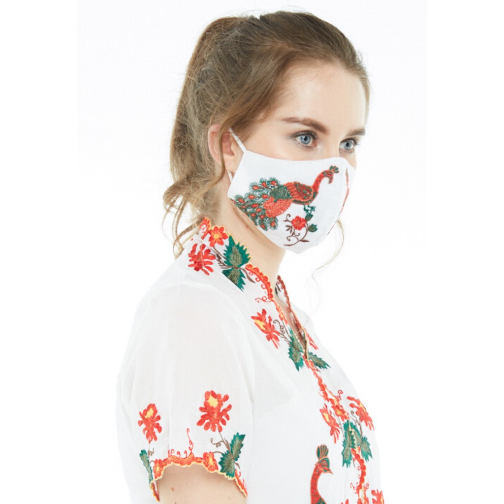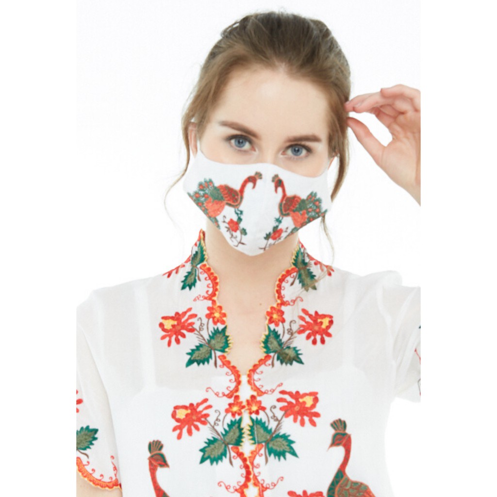 TERBARU! 5 Pilihan MADAME RABBIT - Masker Kain Katun Bordir Merak 3 Ply Bisa Di Cuci - Putih