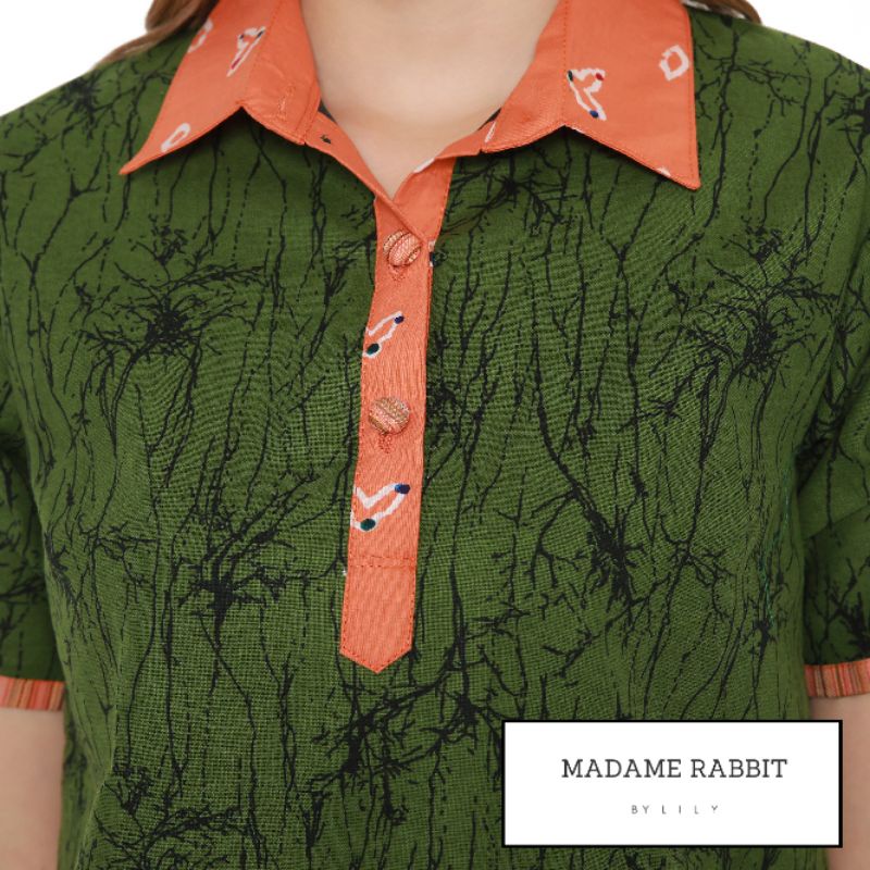 TERBARU! 10 Pilihan MADAME RABBIT - Baju Kerja Casual Madame Rabbit Forest Green Jahit Furing Rapi