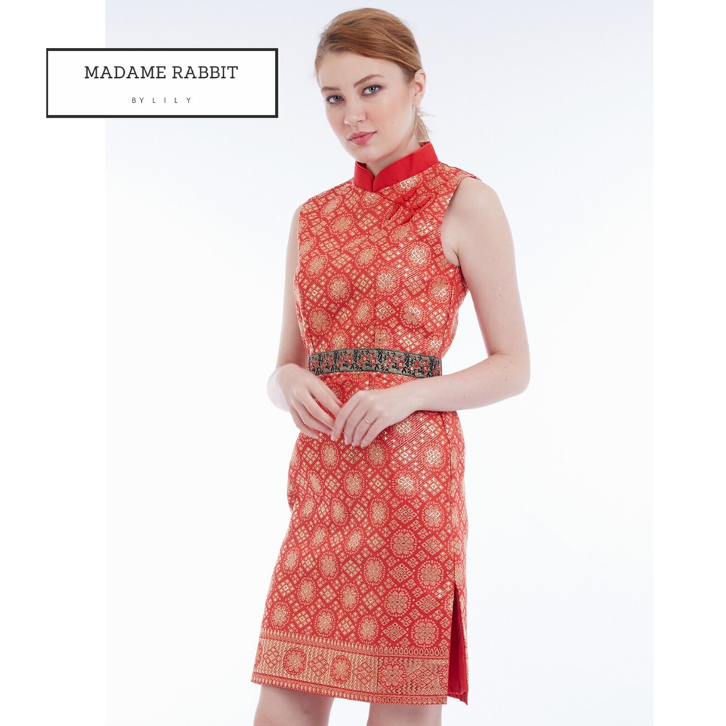 TERBARU! 5 Pilihan MADAME RABBIT Cheongsam Dress Merah Red Berry Songket Jahit Furing