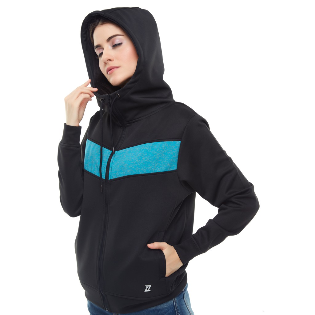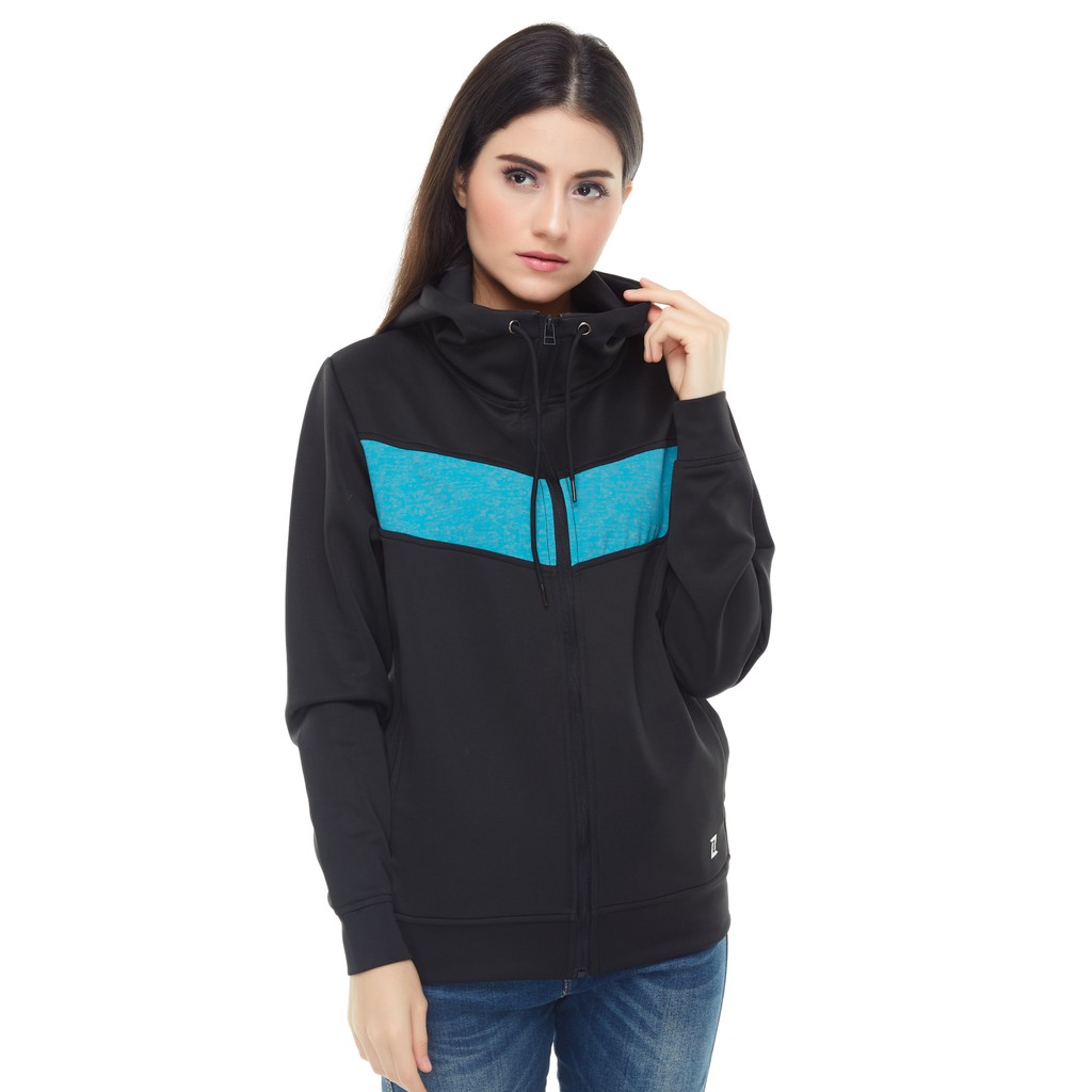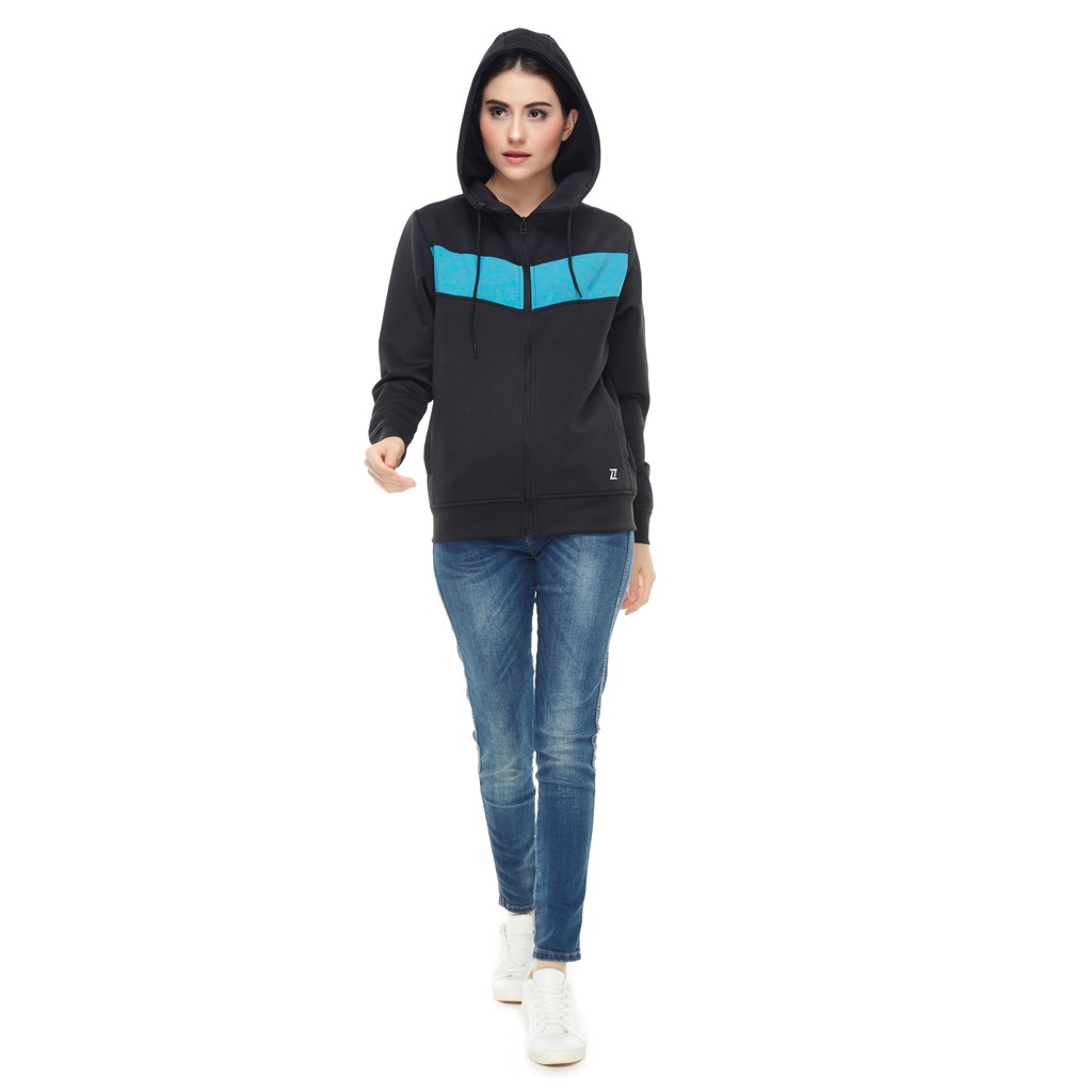 TERMURAH! 6 Rekomendasi ZOLEKA Lavina Jaket Hoodie Sport Wanita - Black Turquoise Blue