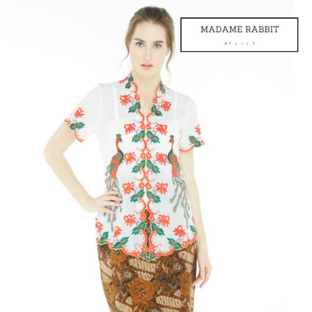 MADAME RABBIT - kebaya Katun Peacock Bordir Manual - Putih