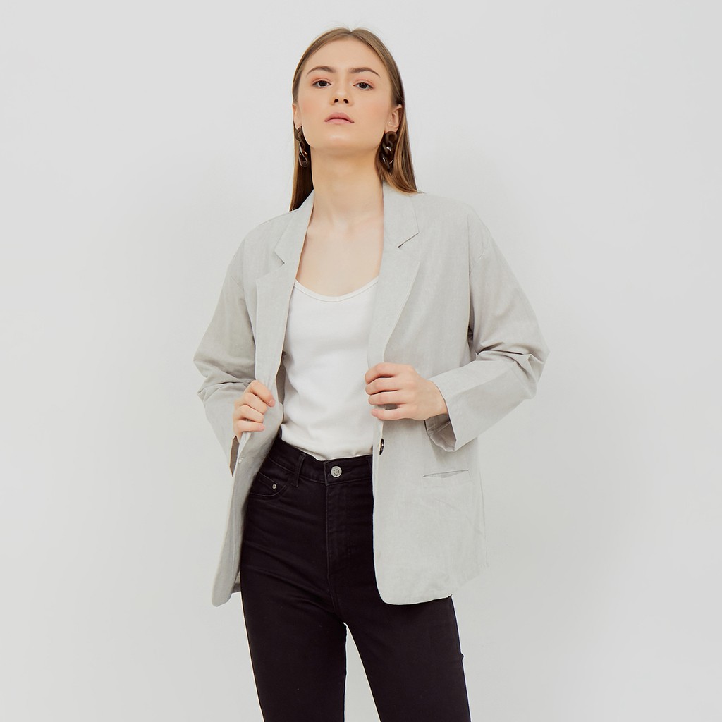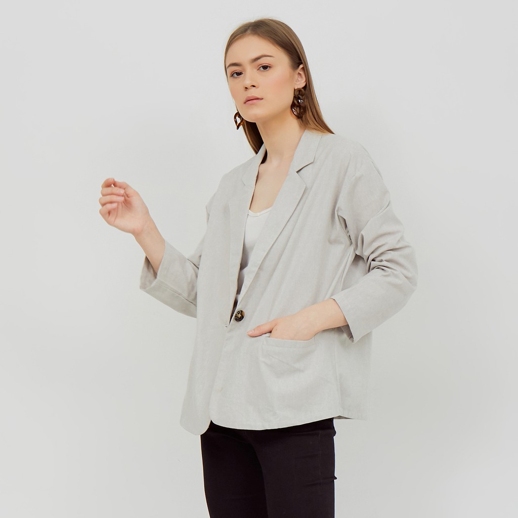 5 Rekomendasi WFH Clothing Linen Juanita Blazer Soft Gray - Outerwear Casual Wanita
