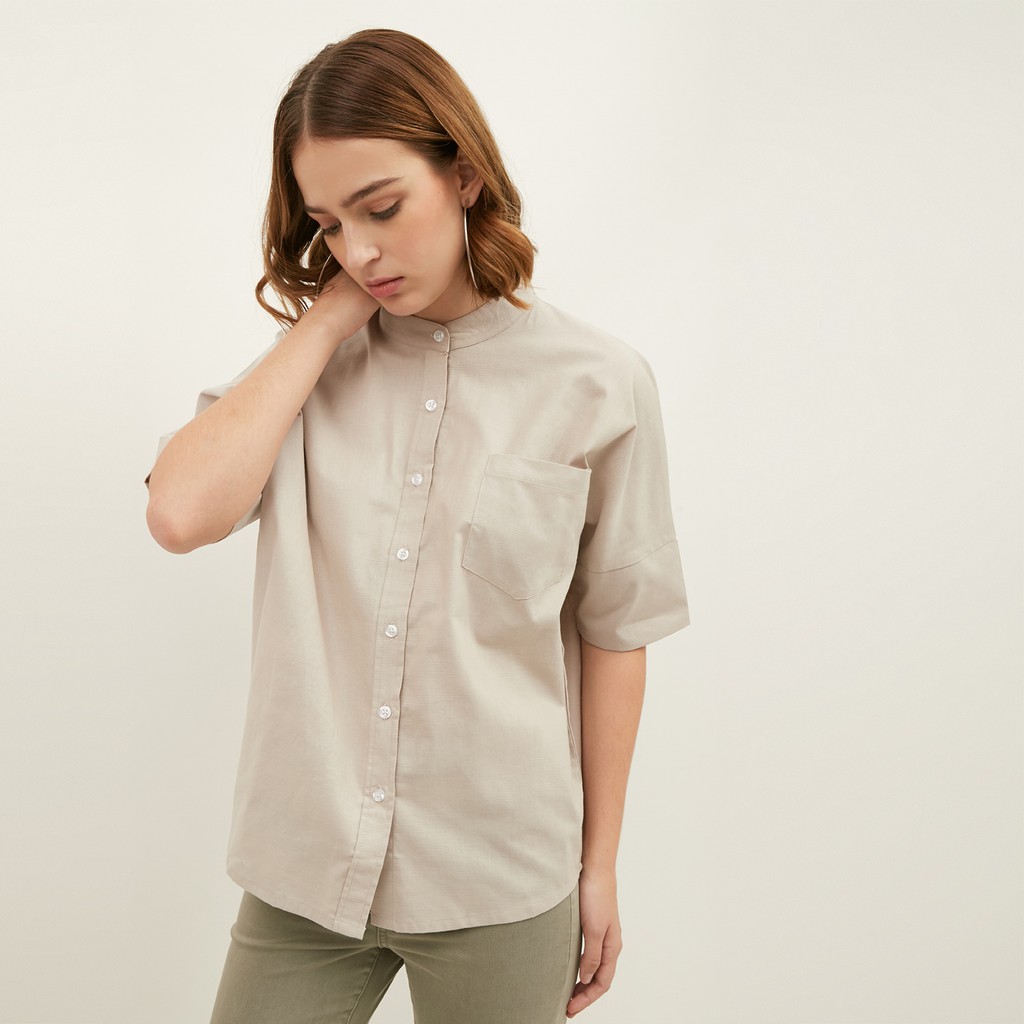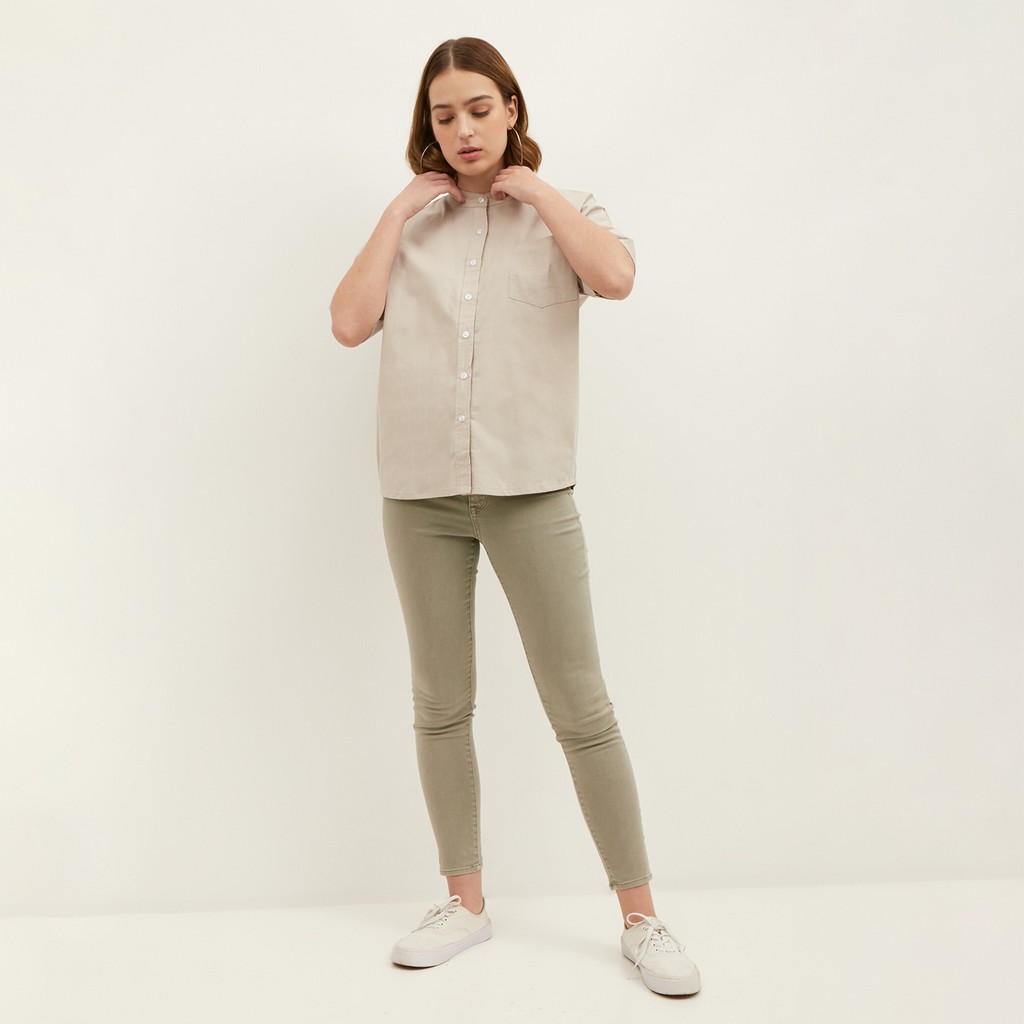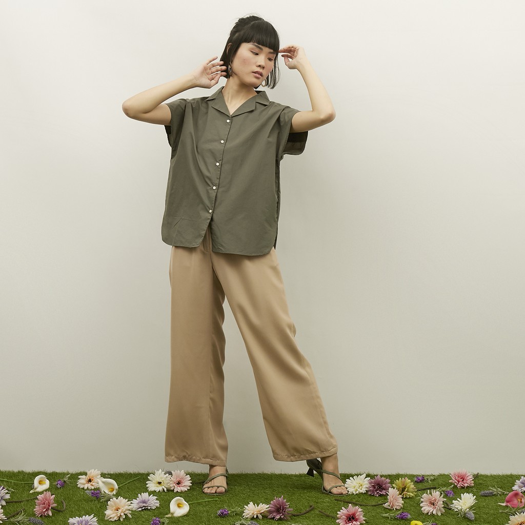 WFH Clothing Polyester Chandie Resort Collar Olive - Blouse Wanita Casual