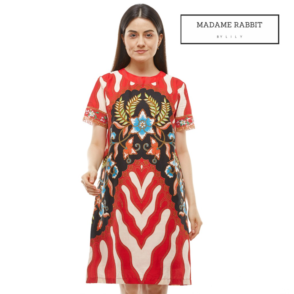 MADAME RABBIT - Red Cherry Dress Jahit Furing Butik