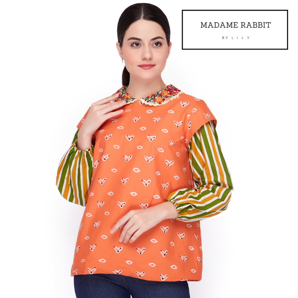MADAME RABBIT - Blus Batik Kantor Lengan Panjang Madame Rabbit Royal Canna Peach