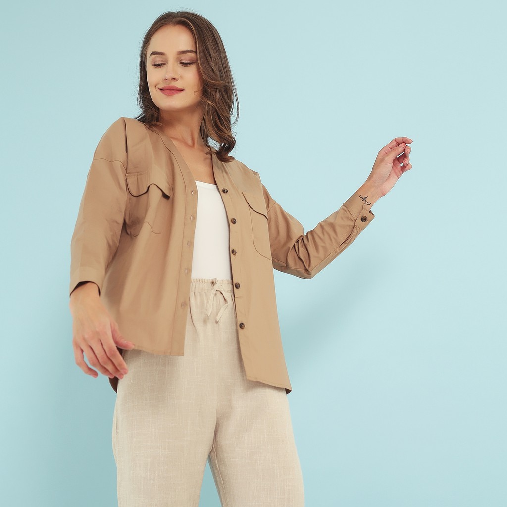 WFH Clothing Cotton Stretch Zinnia Blouse Khaki - Blouse Wanita Casual