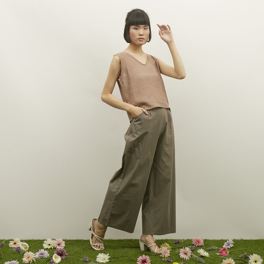 WFH Clothing Linen Peony Pants Brown - Celana Casual Wanita