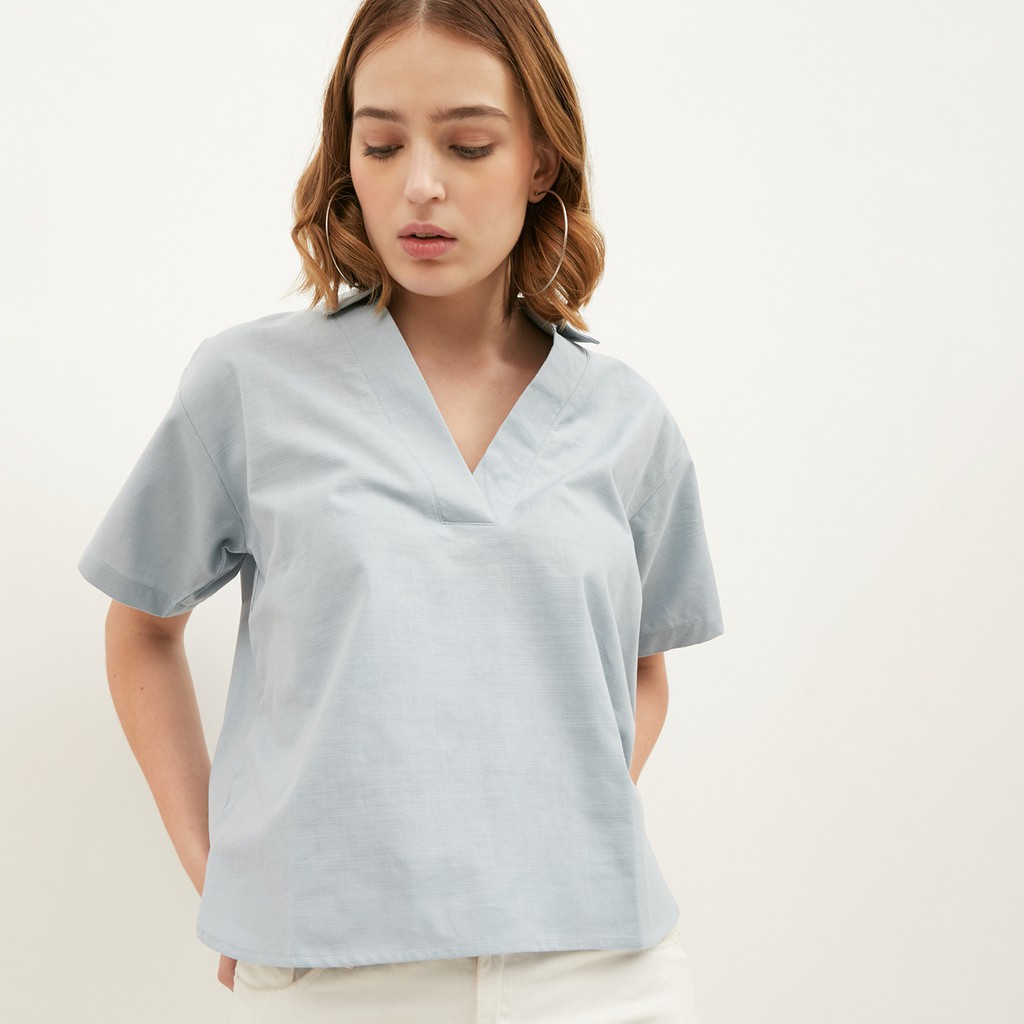 WFH Clothing Slub Aconite Blouse Pearl Blue - Kemeja Wanita Casual