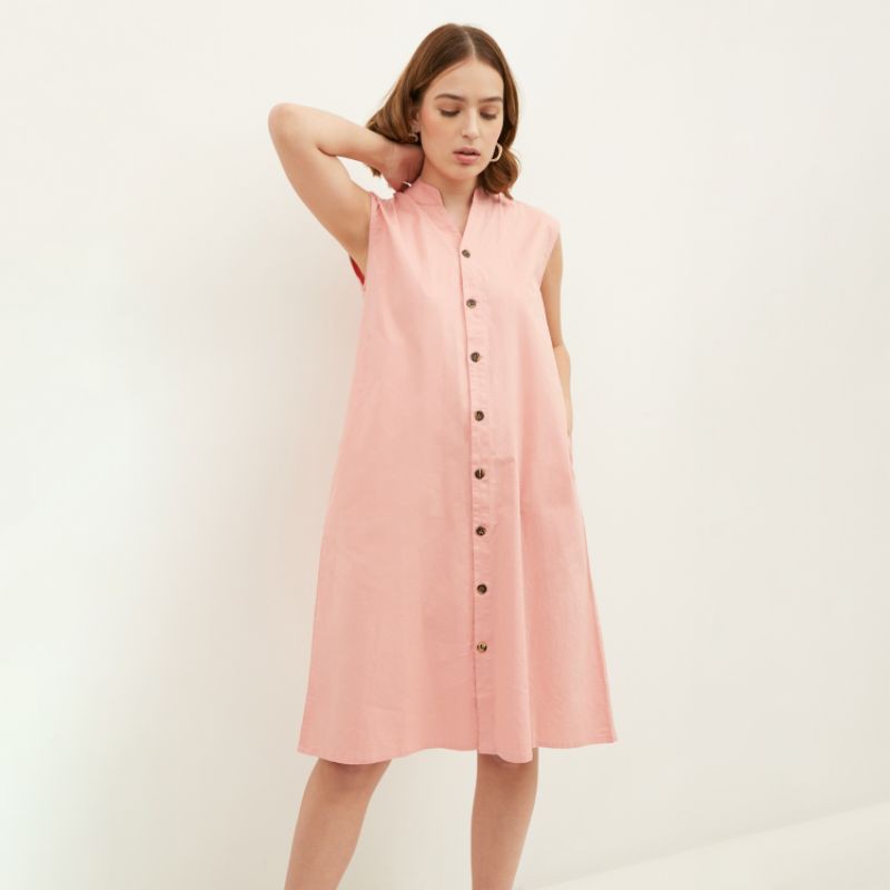WFH Clothing Cotton Lantana Dress Sleeveless Pink - Dress Wanita Casual