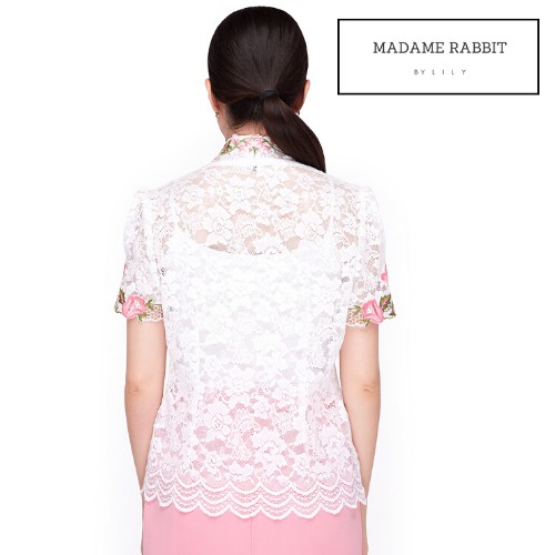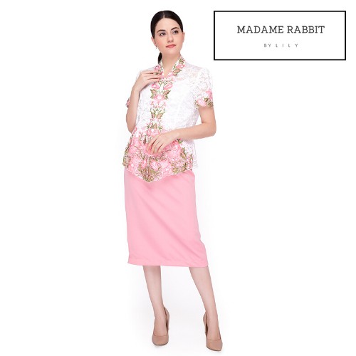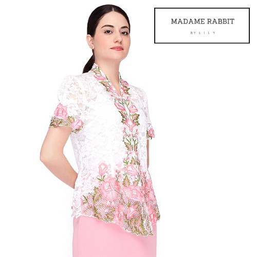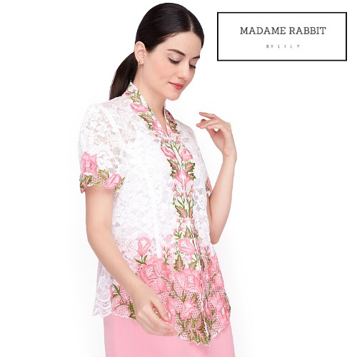MADAME RABBIT - Kebaya Brokat Putih Bordir Tulip Pink Jahit Butik Rapi