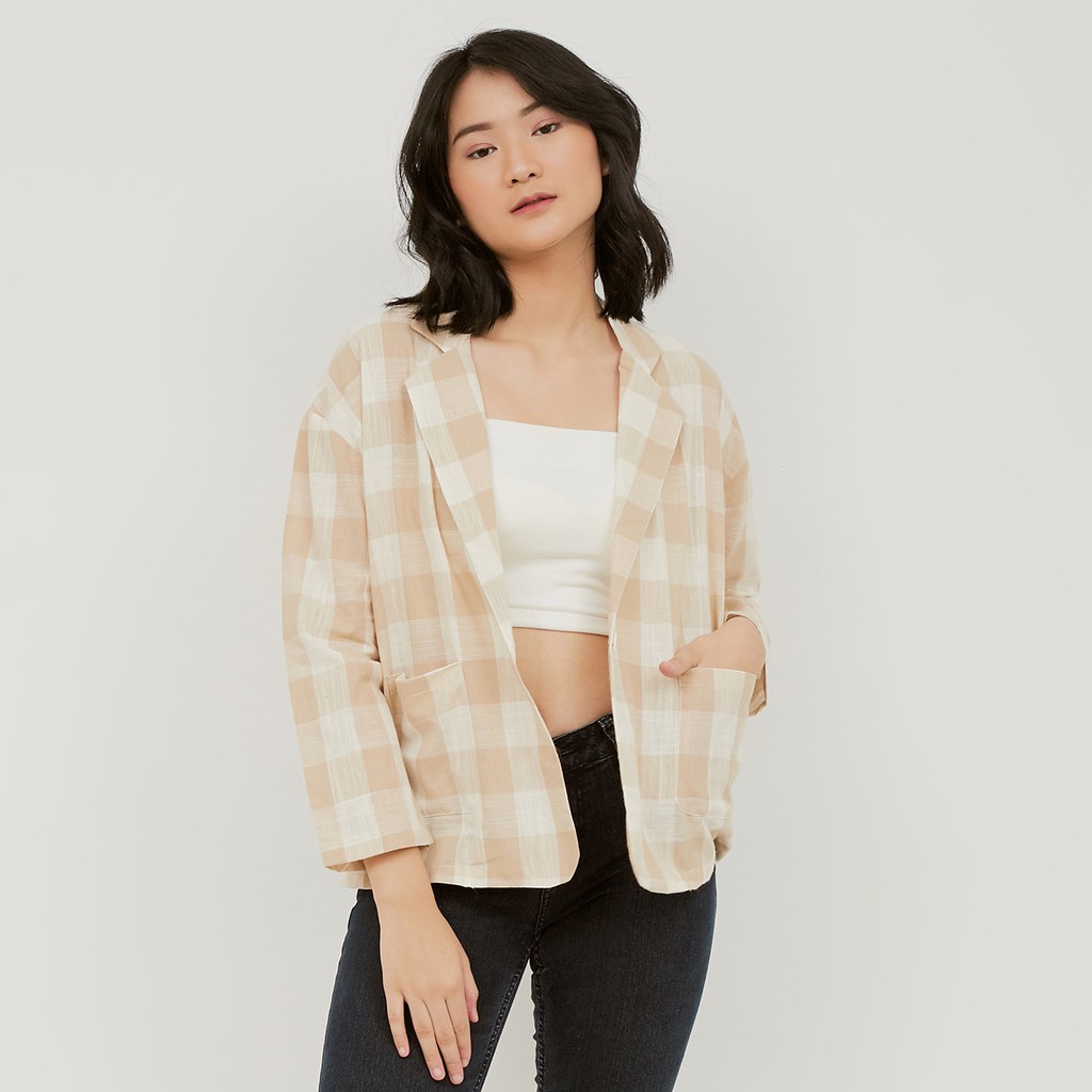 TERMURAH! 10 Pilihan WFH Clothing Linen Alice Blazer Cream - Outerwear Wanita Casual