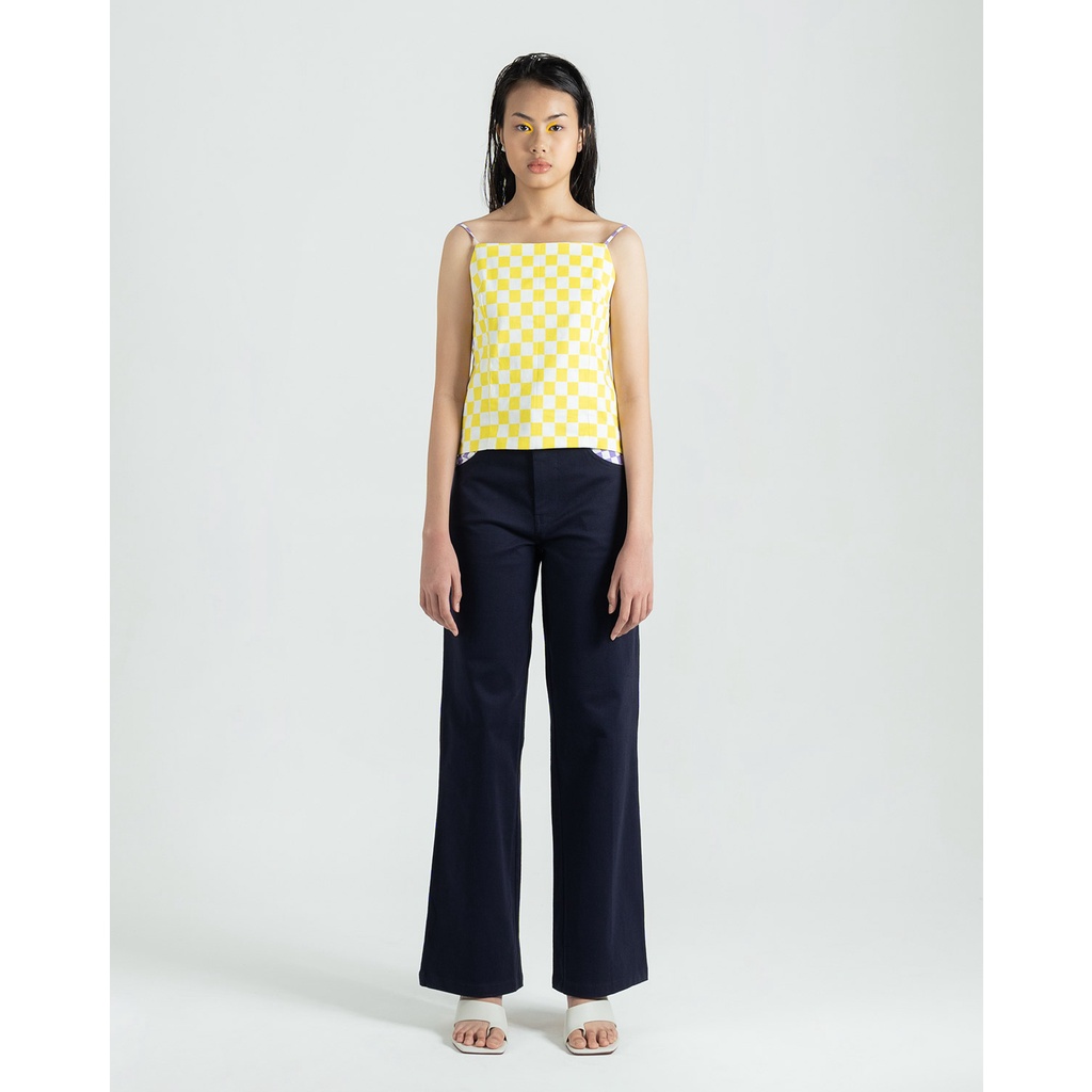 Callie Cotton - Kaia Crop Top Purple-Yellow Plaid