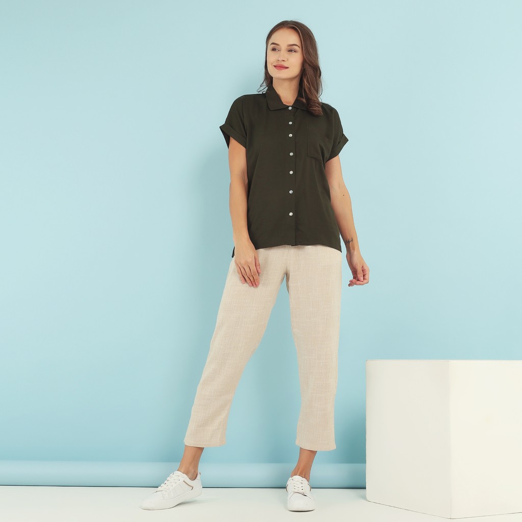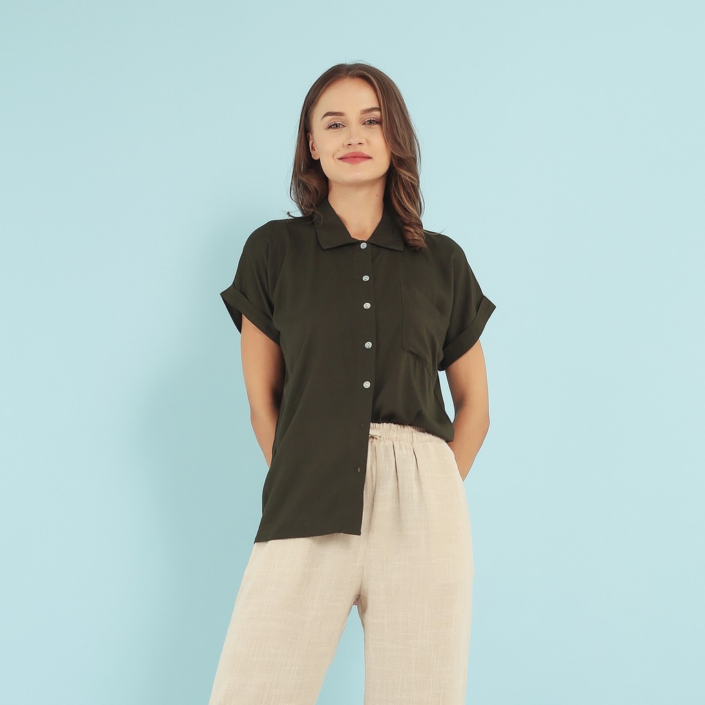 10 Rekomendasi WFH Clothing Rayon Garberra Shirt Army - Kemeja Wanita Casual