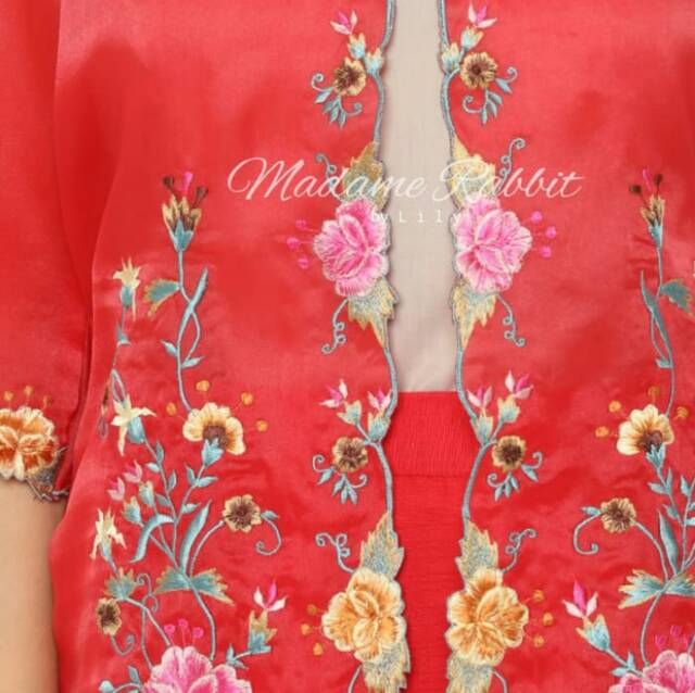 Alasan kenapa harus beli MADAME RABBIT - Kebaya Pesta Organdy Full Bordir Bunga Lengan 3/4 - Merah sekarang