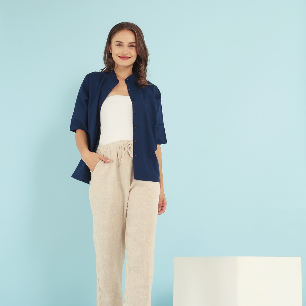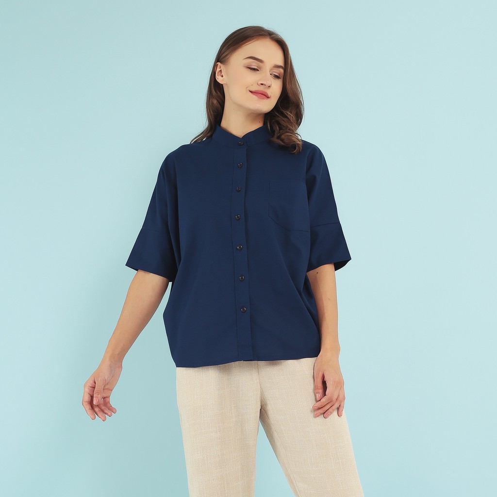 7 Pilihan WFH Clothing Cotton Fuchia Blouse Navy - Blouse Wanita Casual