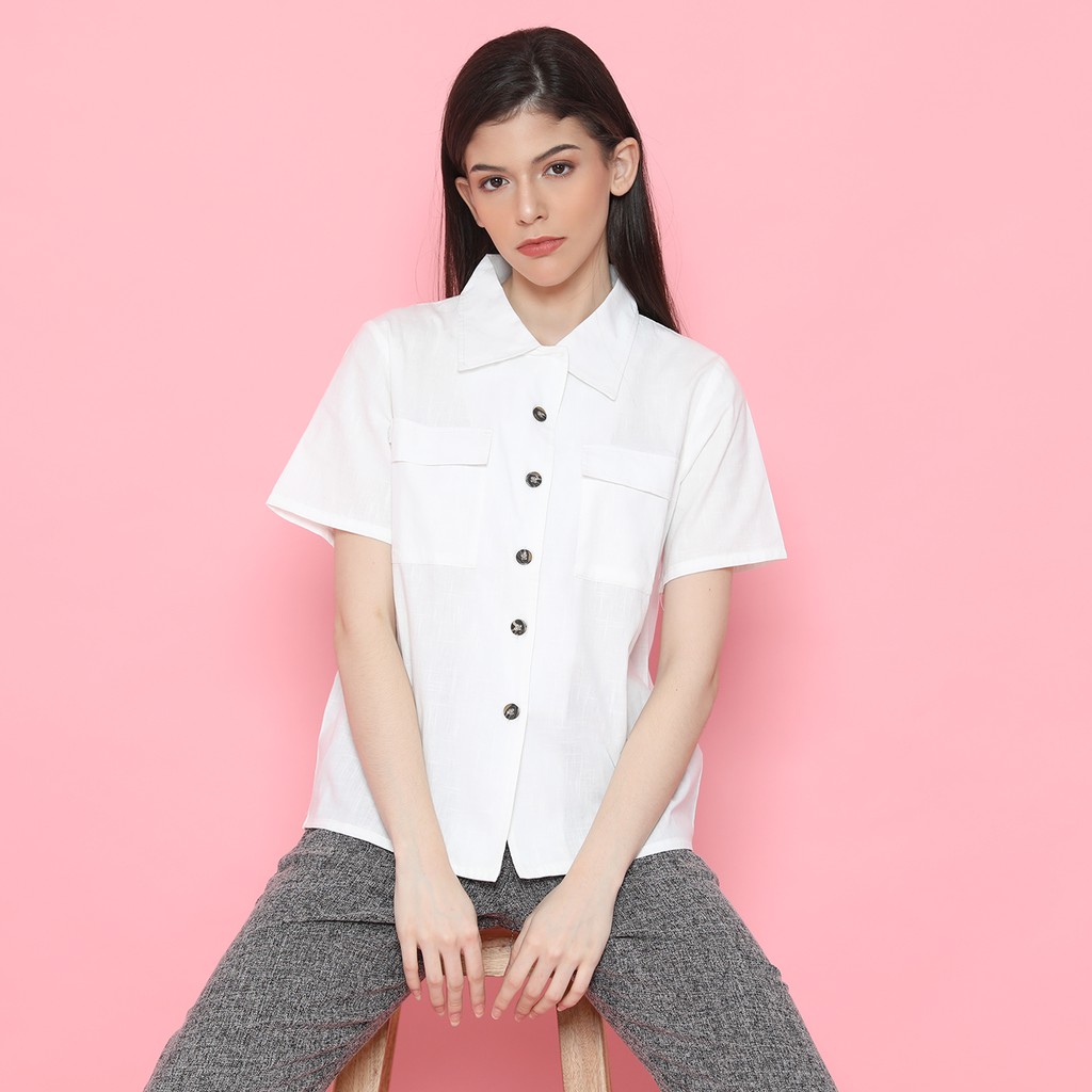 WFH Clothing Cotton Camellia Shirt White - Kemeja Wanita Casual