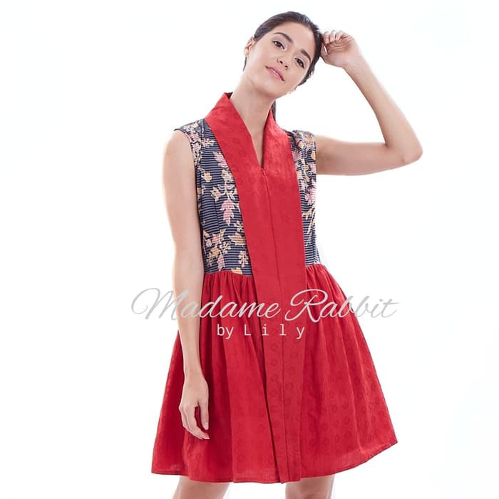 8 Rekomendasi MADAME RABBIT - Baju Wanita Dress Batik Tenun Shawl Of Java - Merah