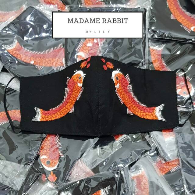 Alasan kenapa harus beli MADAME RABBIT - Masker Bordir Katun Bermotif Ikan Koi - Hitam sekarang