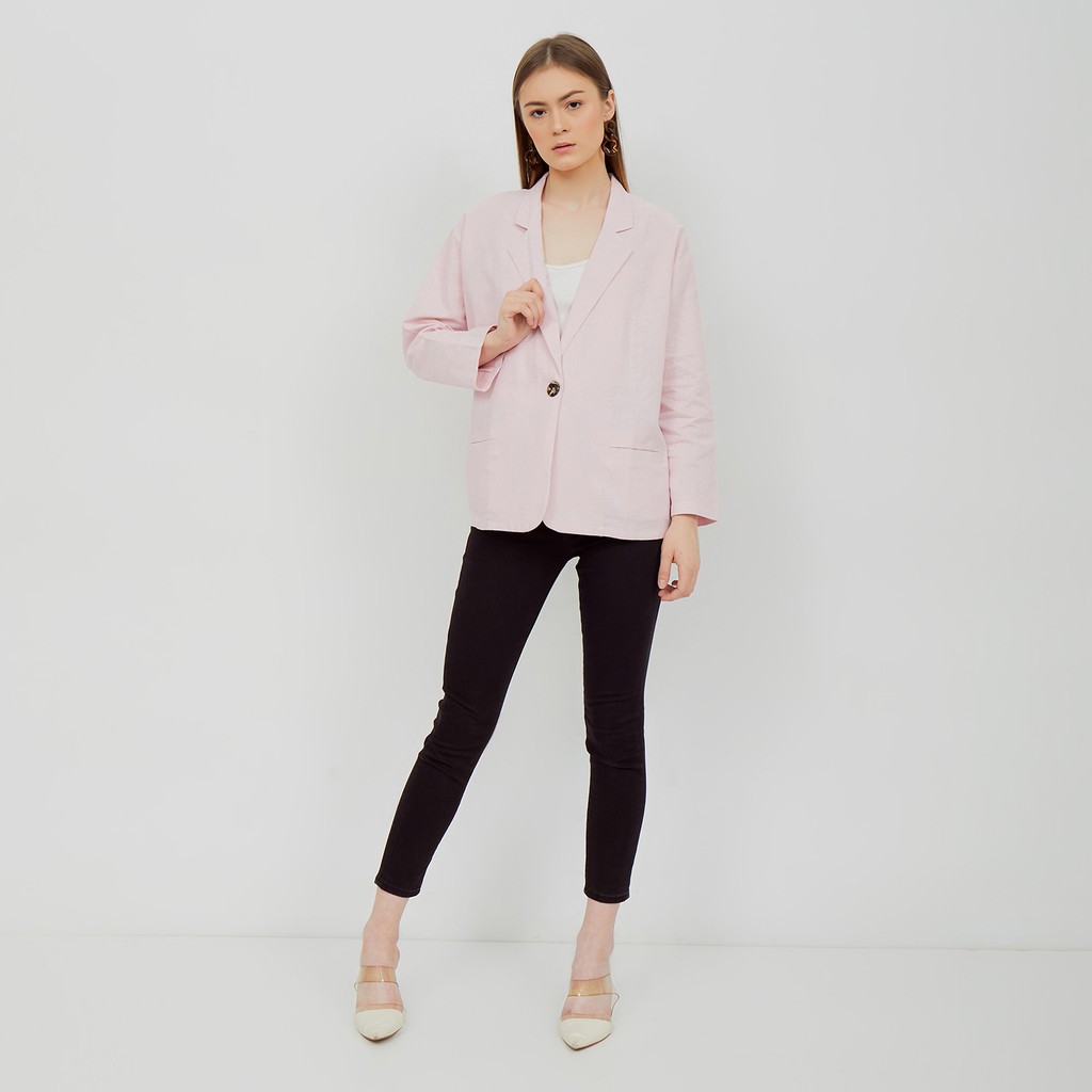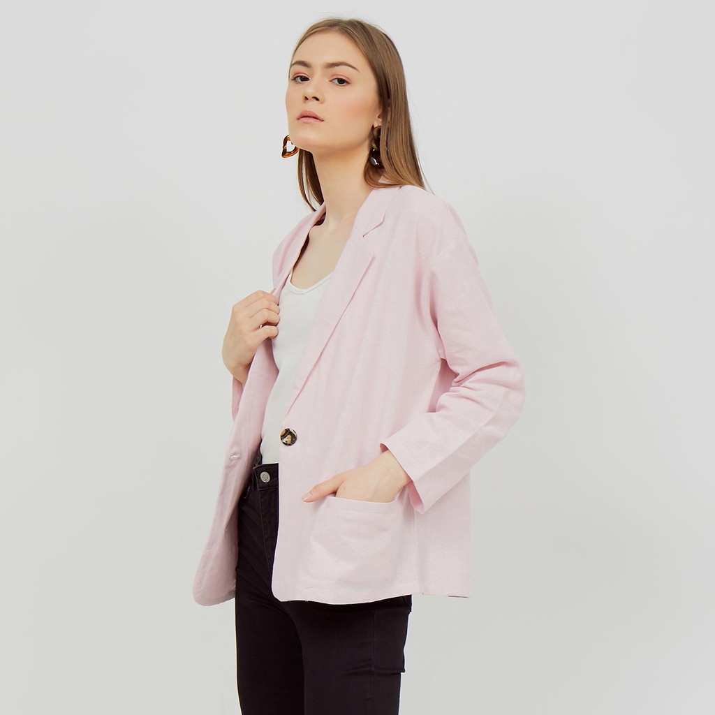 8 Rekomendasi WFH Clothing Linen Juanita Blazer Soft Pink - Outerwear Casual Wanita