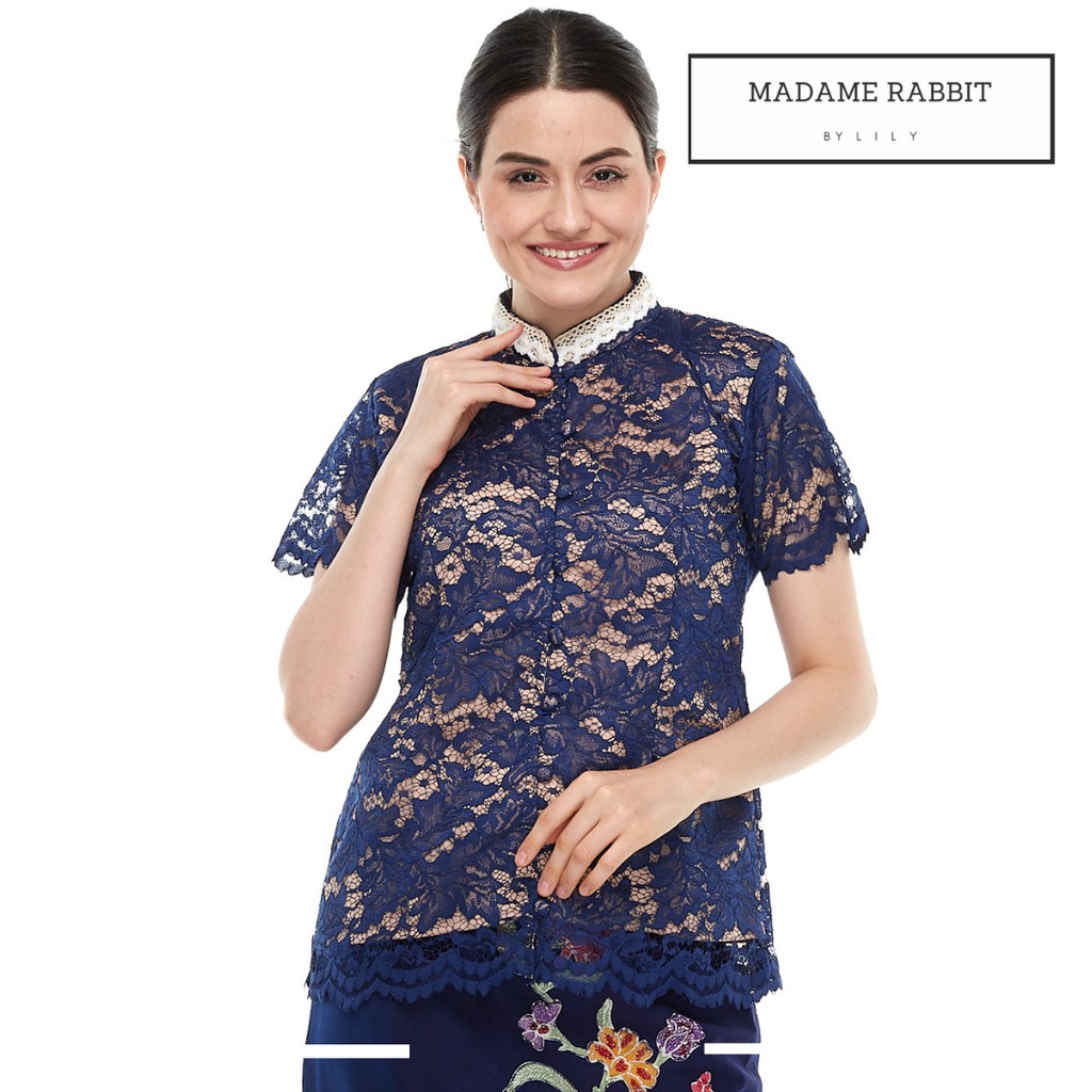 MADAME RABBIT - Brocade Lace Navy Baju Kantor Brokat Halus