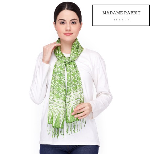 MADAME RABBIT - Syal Batik Hijau Semi Silk Halus Ringan Elegant