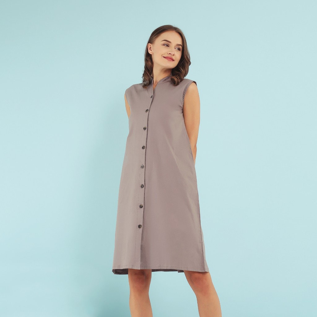 WFH Clothing Cotton Lantana Dress Sleeveless Gray - Dress Wanita Casual