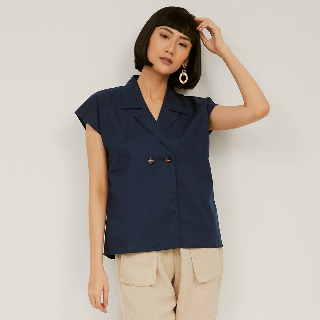 Kelebihan - Kelebihan membeli WFH Clothing Cotton Pansy Blouse Navy - Kemeja Wanita Casual di Toko ini