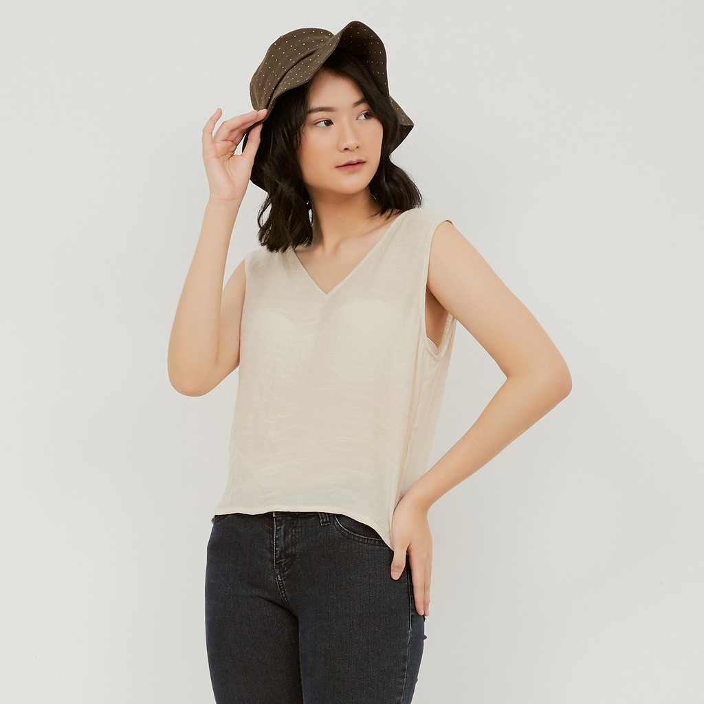 WFH Clothing Slub Lunaria Sleveless Beige - Blouse Wanita Casual