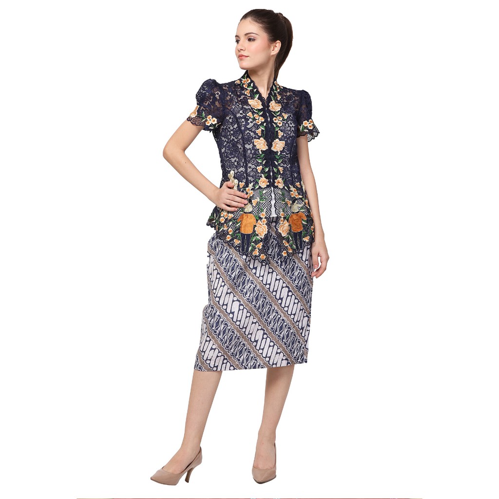 MADAME RABBIT - Rok Batik Tulis Encim Kerja Dan Kebaya - Navy
