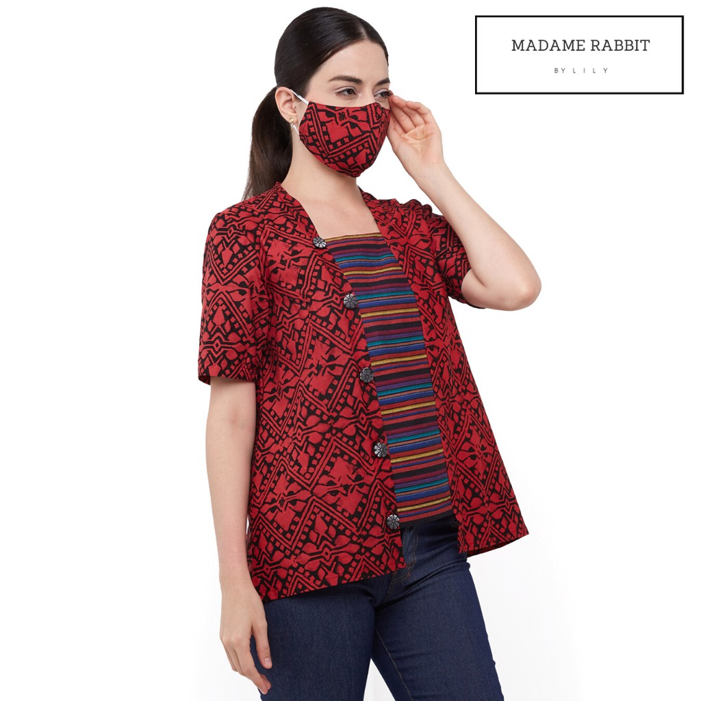 Alasan kenapa harus beli MADAME RABBIT- Blus Batik Kantor Merah Ruby Lengan Pendek Katun sekarang