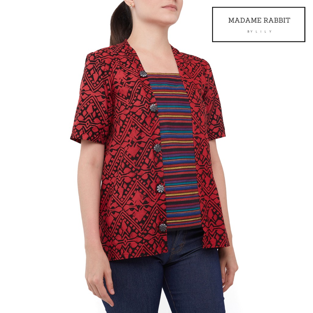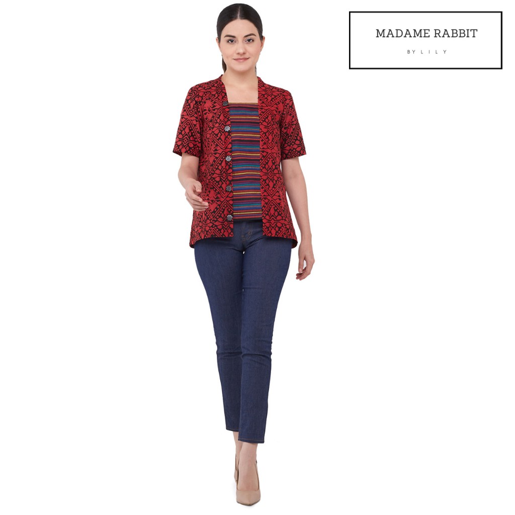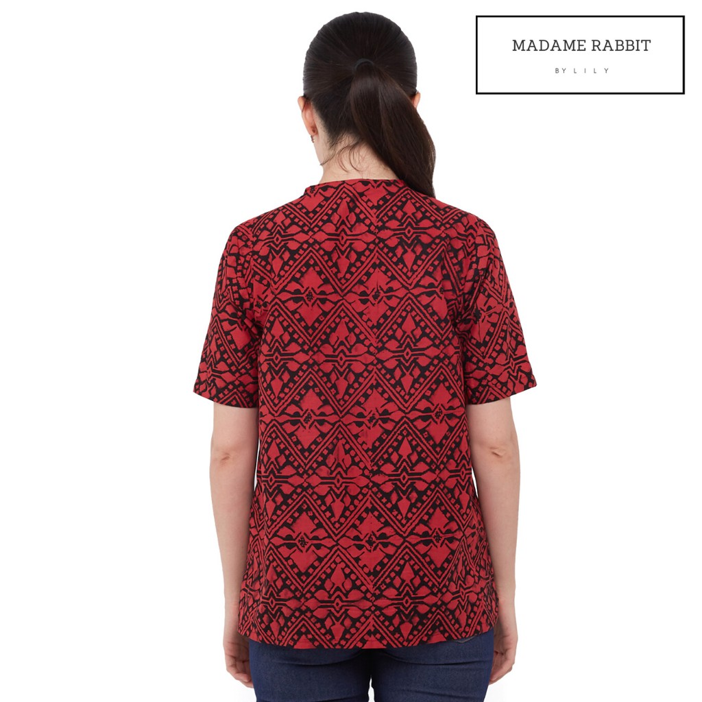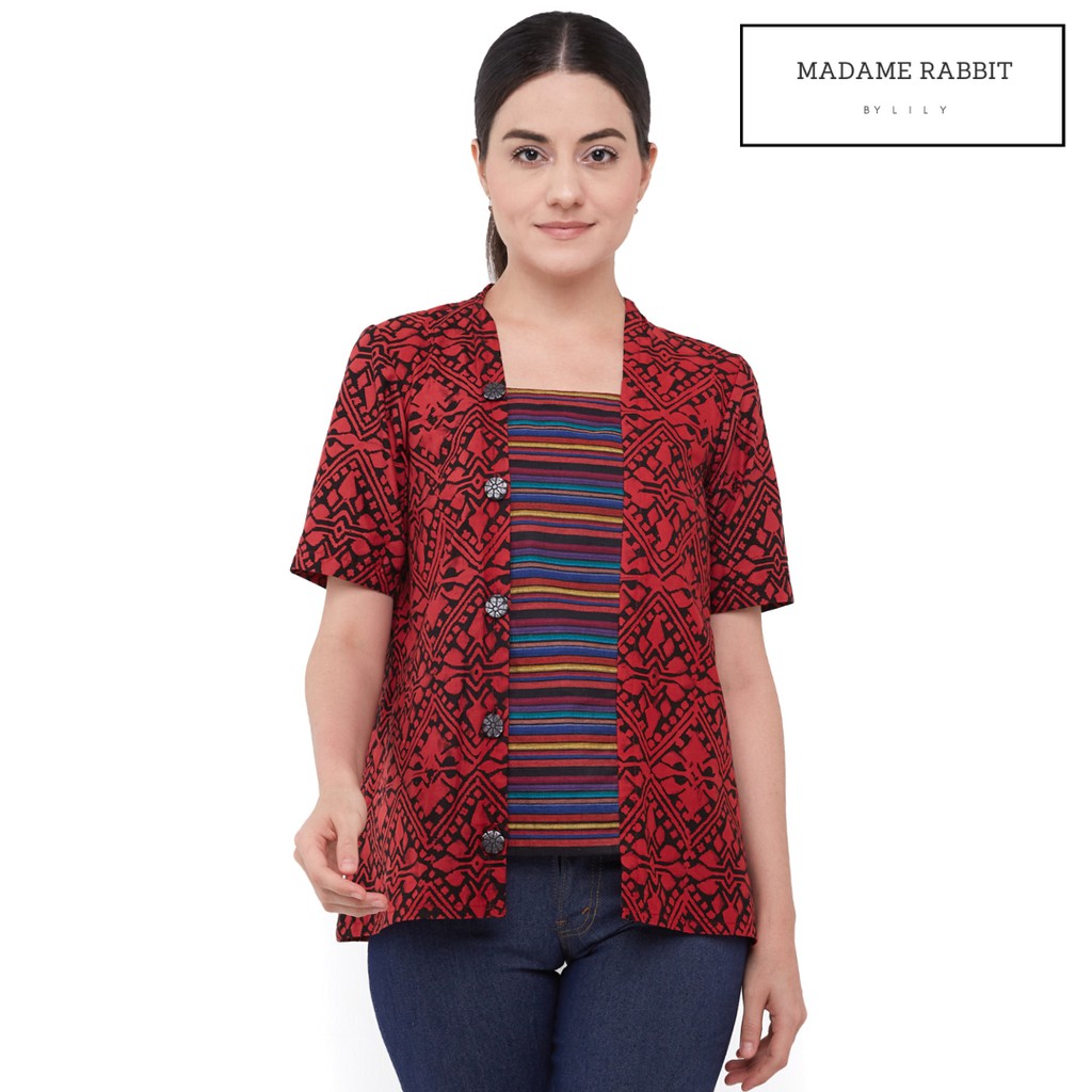 6 Rekomendasi MADAME RABBIT- Blus Batik Kantor Merah Ruby Lengan Pendek Katun