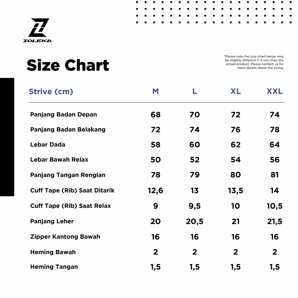 Produk ini memiliki 4 Variasi Strive yaitu : M,L,XL,XXL,