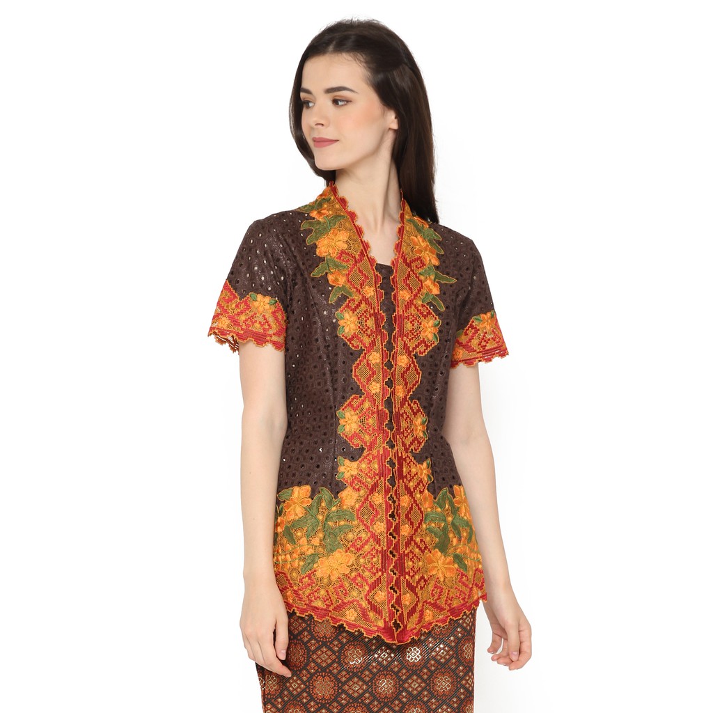 MADAME RABBIT - Kebaya Katun Bordir Bunga - Dark Brown
