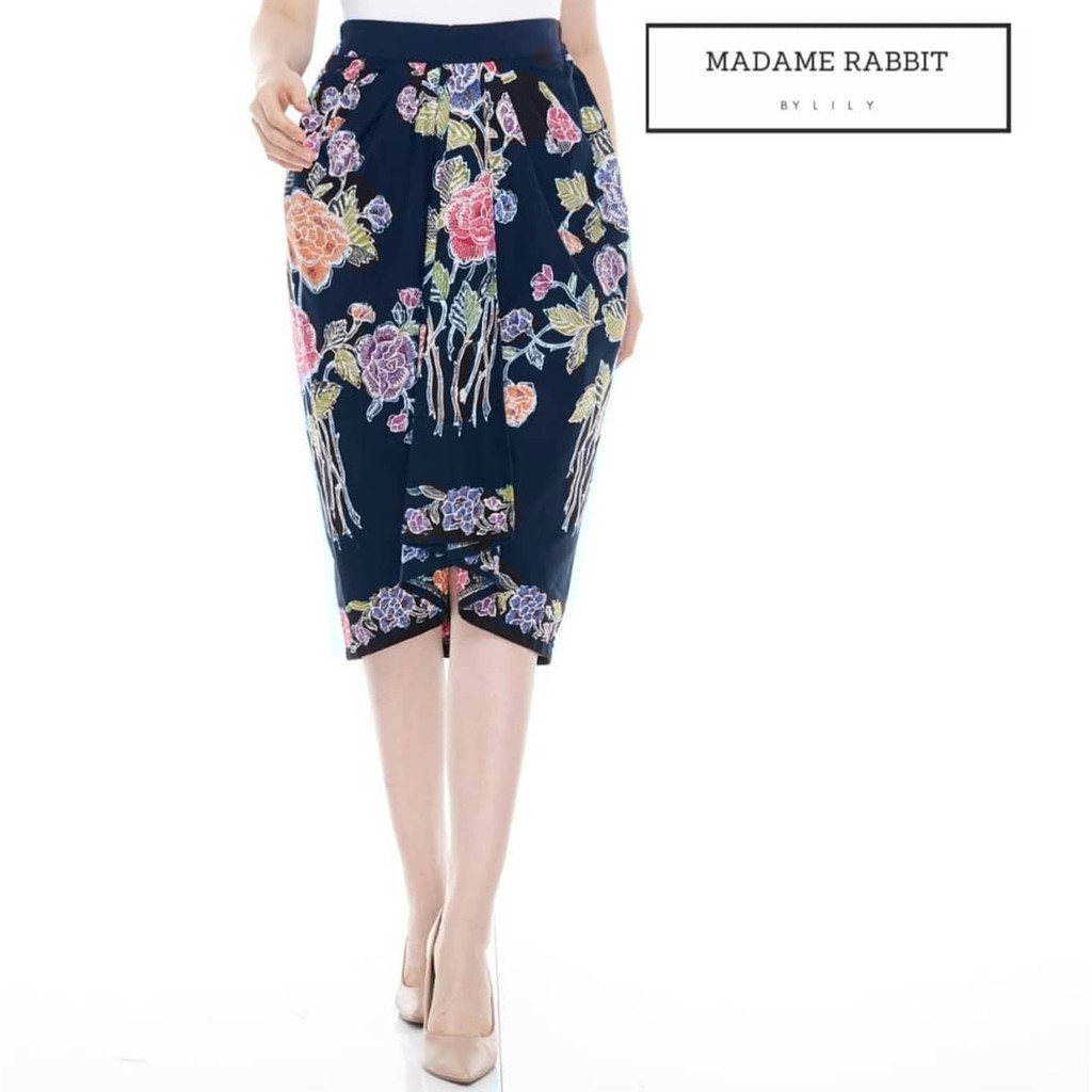 MADAME RABBIT - Rok Batik Handmade Biru Navy Encim Colet Model Lipat