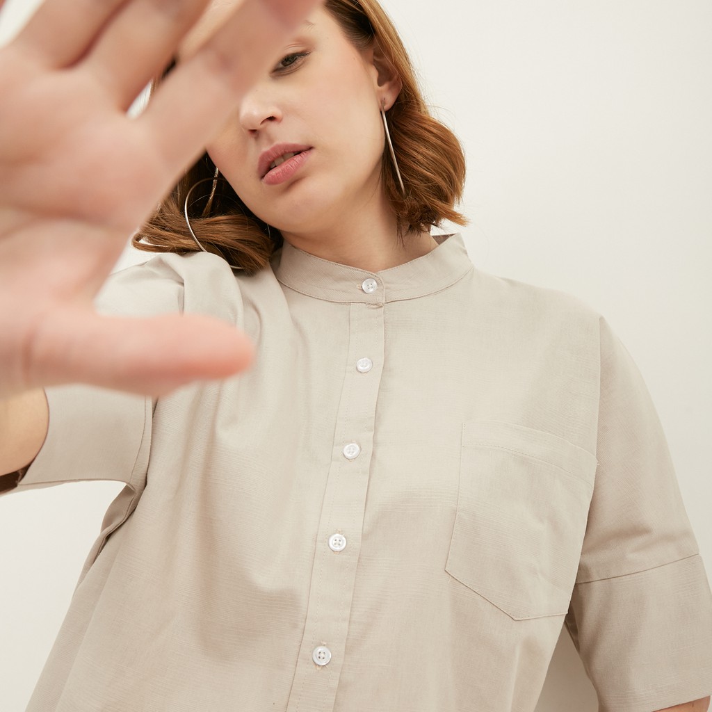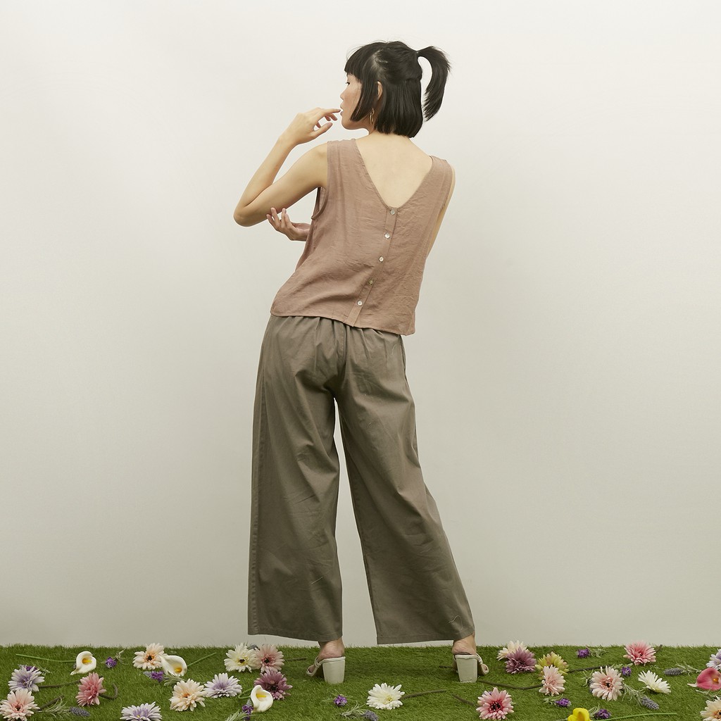 WFH Clothing Slub Lunaria Sleveless Beige - Blouse Wanita Casual
