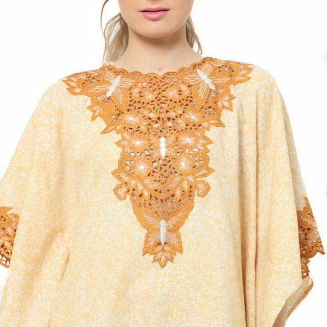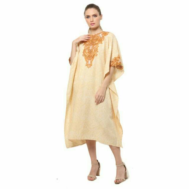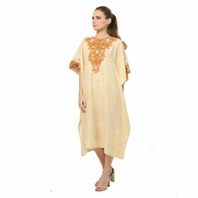 Alasan kenapa harus beli MADAME RABBIT - Dress Kaftan Katun Batik Dobi Bordir Kupu - Kupu - Kuning Caramel sekarang