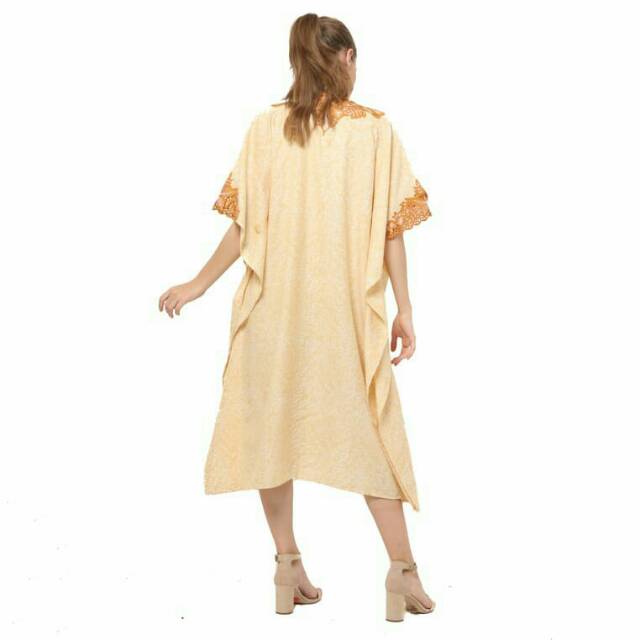 TERBARU! 5 Rekomendasi MADAME RABBIT - Dress Kaftan Katun Batik Dobi Bordir Kupu - Kupu - Kuning Caramel