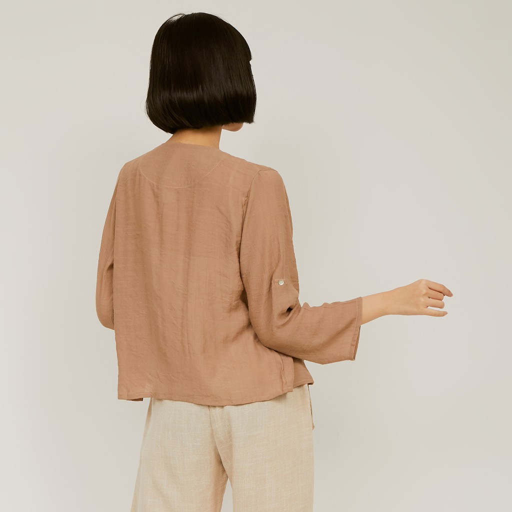 WFH Clothing Rayon Illa Resort Collar Sephia - Blouse Casual Wanita